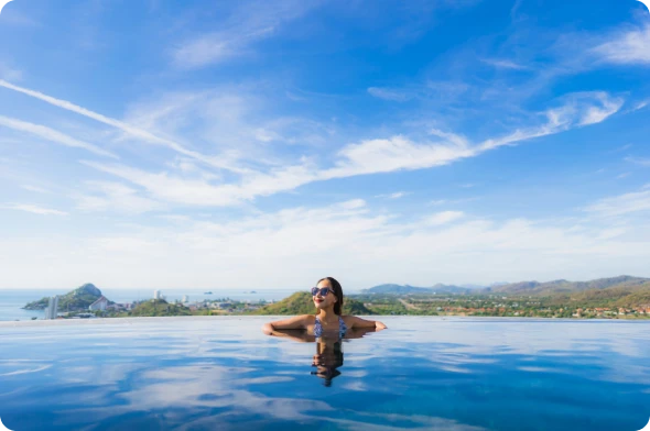 Desfrute de vistas deslumbrantes enquanto se refresca em nossa piscina infinita